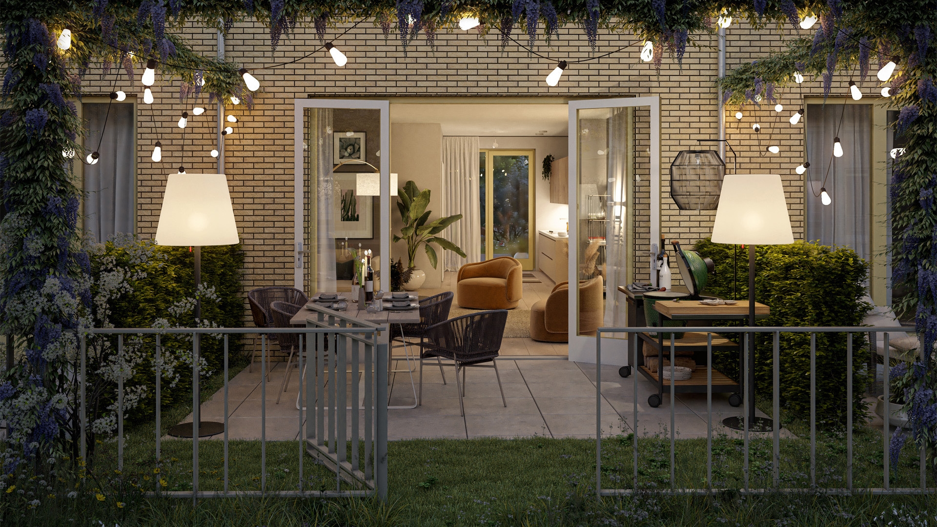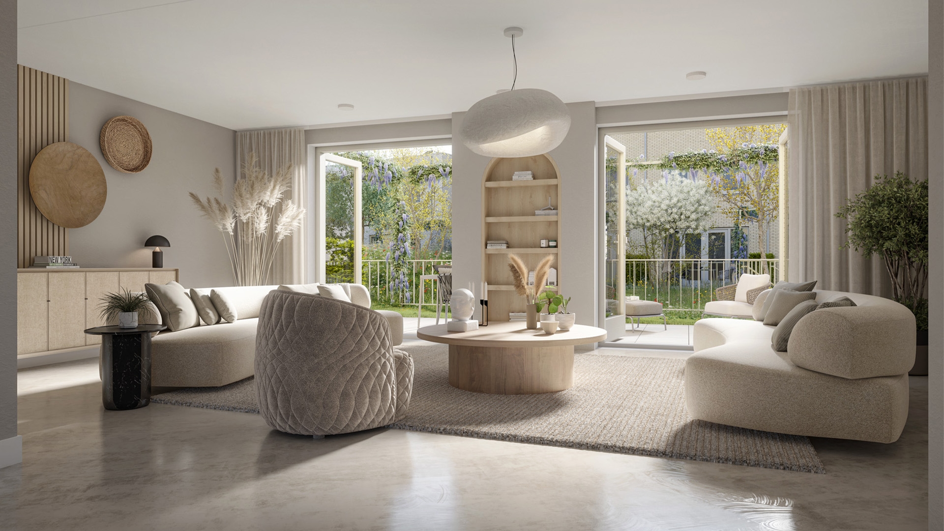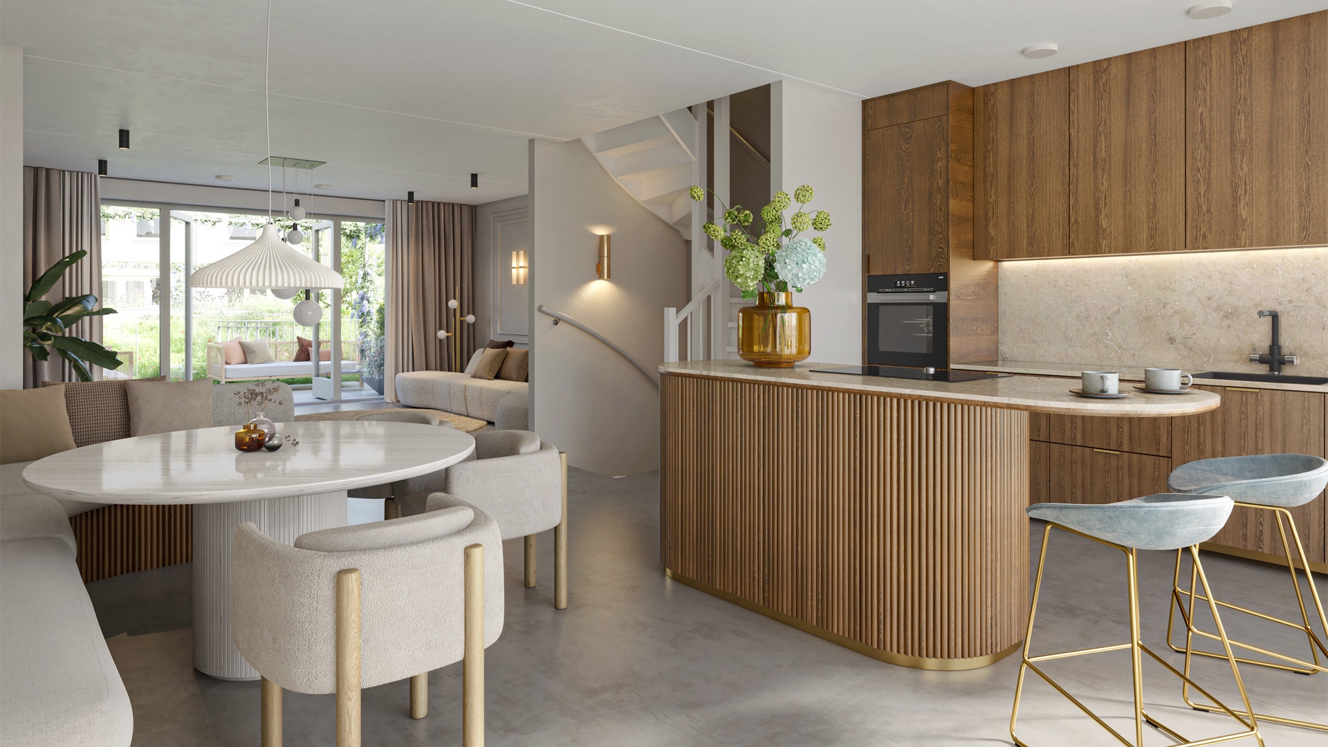 Woonkamer en keuken grenzend aan de privétuin op begane grond