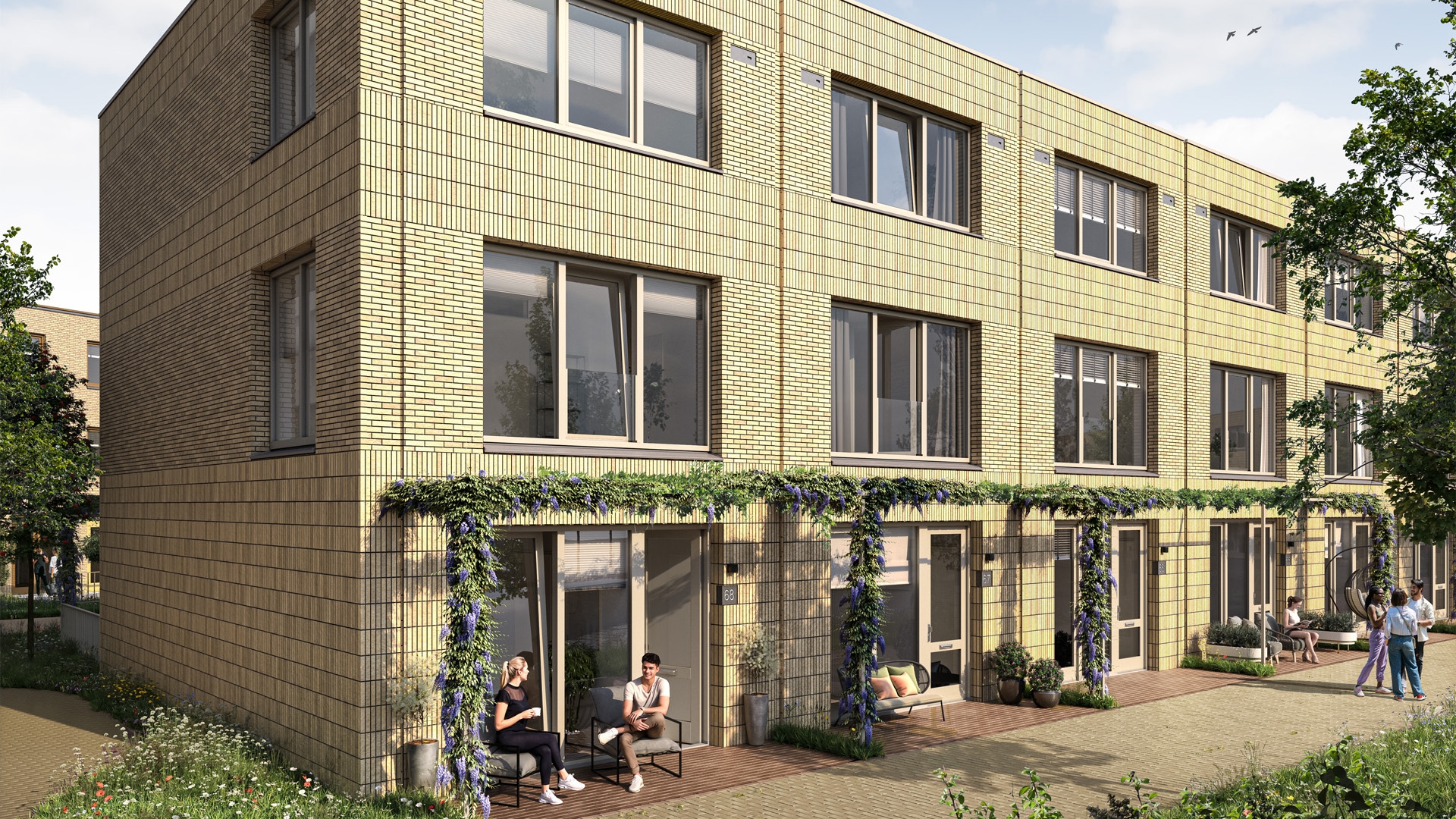 De Landschapswoningen van Podium fase 2 bieden onderling veel variatie. Sommige woningen hebben hun woonkamer op de eerste verdieping, grenzend aan een privétuin die uitloopt in een prachtig ontworpen collectieve binnentuin. Andere woningen hebben juist een woonkamer en tuin op de begane grond, of vallen op door hun ‘waaier’vorm en een extra brede living. In deze bouwfase worden er 23 Landschapswoningen gerealiseerd, elk met drie verdiepingen en een plat dak. Het zijn ware stadswoningen: ruim opgezet, met een woonoppervlak tussen 155 en 192 m². Dankzij de grote ramen is er overal in huis een sterke verbinding met buiten. Voor het parkeren van je auto is er een stallingsgarage beschikbaar.