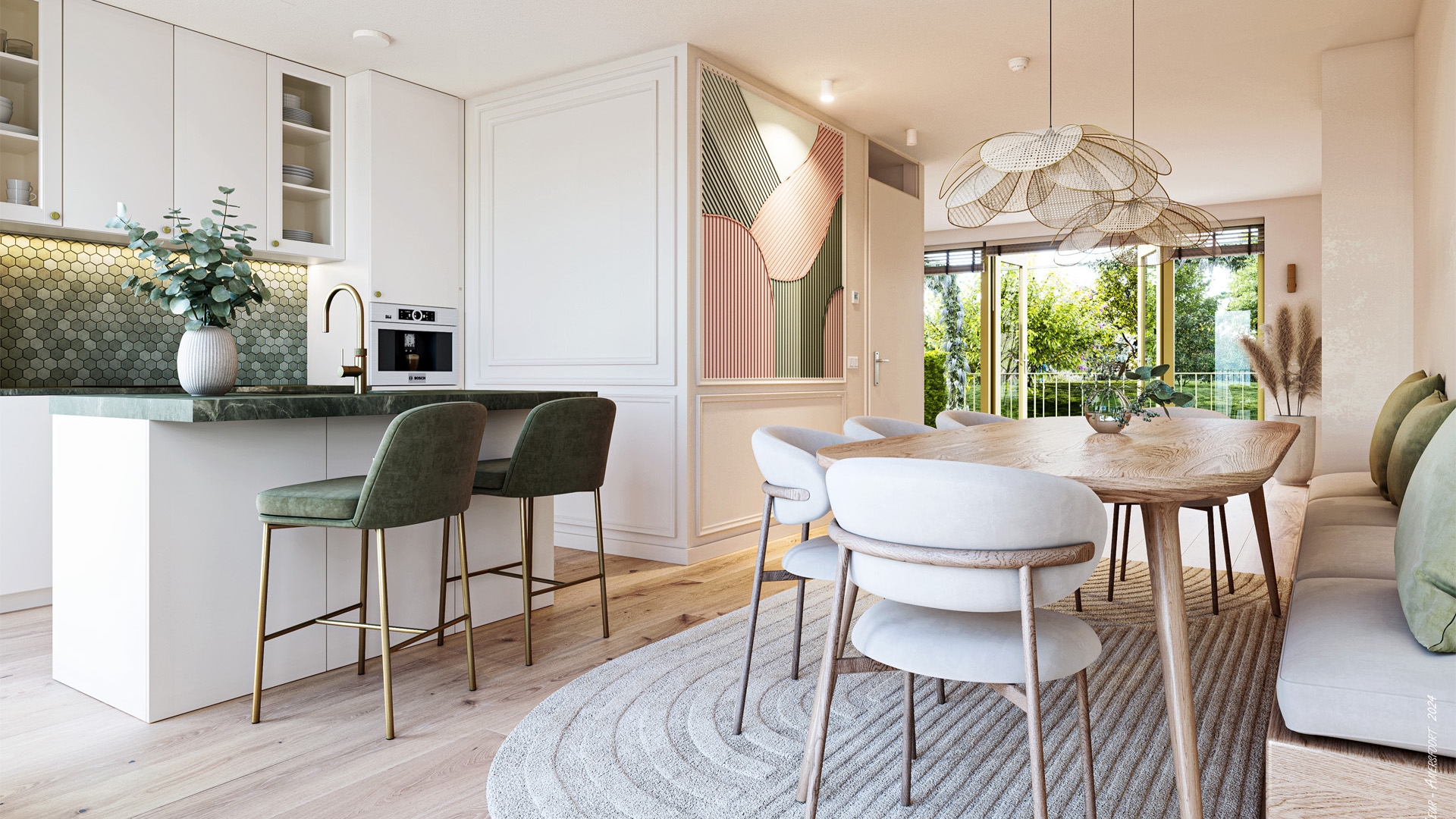 Living met keuken en woonkamer op de begane grond, grenzend aan de gemeenschappelijke binnentuin