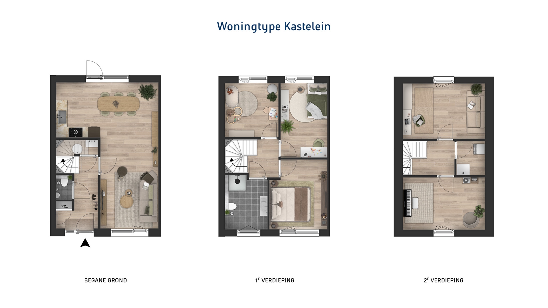 Woningtype Kastelein in Wolderburght biedt royaal en comfortabel wonen met een warme, eigentijdse uitstraling. Deze karakteristieke woning heeft een royale, tuingerichte woonkeuken waar het dagelijks leven zich vanzelf afspeelt. Op de verdiepingen vind je drie royale slaapkamers en op zolder nog twee onbenoemde ruimtes plus een technische ruimte, perfect voor thuiswerken, hobby’s of extra bergruimte. Parkeren doe je gemakkelijk op eigen terrein met twee parkeerplaatsen en ook buiten is alles doordacht, met een praktische berging voorzien van een groen mos sedumdak.