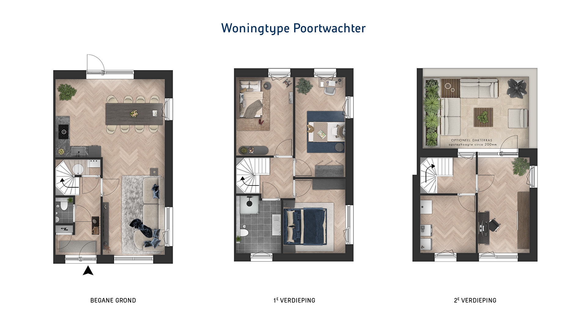 Woningtype Poortwachter in Wolderburght is een royale woning met een fijne, tuingerichte woonkeuken als centraal punt van het huis. Een fijne ruimte waar koken, tafelen en ontspannen moeiteloos in elkaar overlopen. Of je nu samen eet, werkt aan de eettafel of ’s avonds tot rust komt, hier is ruimte voor elk moment.