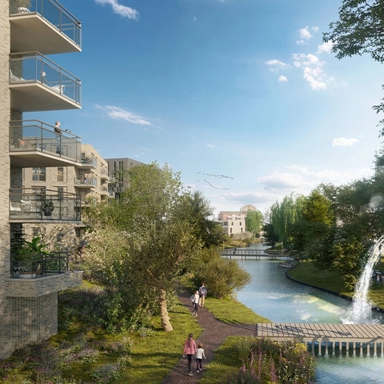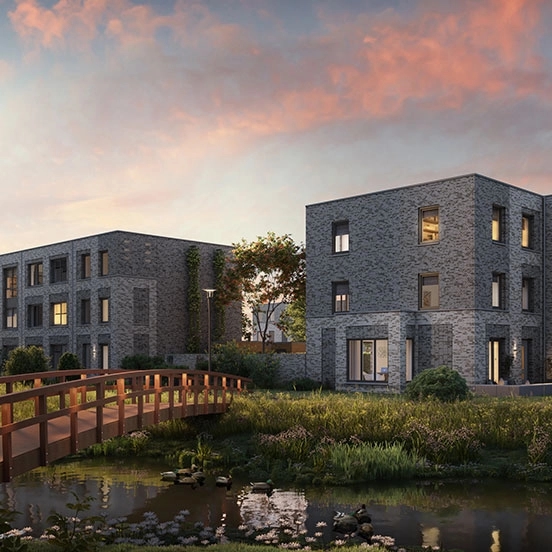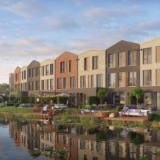 Aan de oostzijde van Westergouwe ligt Eilandwonen, een unieke woonbuurt omringd door water. Hier woon je vrij en ruim, met het water altijd dichtbij.